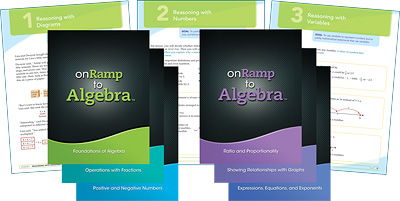 onRamp to Algebra is an intervention program designed exclusively to ensure that at-risk students are adequately prepared for Algebra 1. The program is ideally implemented the year prior, to build and solidify foundational skills and conceptual understanding necessary to be successful in Algebra 1.onRamp to Algebra is a complete instructional system that utilizes technology to deliver online homework support and in-class presentation screens for whole class participation. Although the program can be implemented solely with the printed Student and Teacher editions, it is optimized when coupled with in-class technology such as whiteboards/projectors; as well as when students access its online learning aids, which provide scaffolded, point-of-use homework support. As such, the program is designed to grow with your schools' Technology Plan.